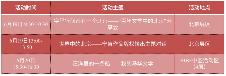 在此次图博会期间,原创文学的展示还包括将举行三场文学活动。三场文学活动均由“十月文艺”主办。其中“字里行间都有一个北京——‘百年文学中的北京’分享会”将深入探讨北京在文学作品中的形象与变迁,展现北京的历史文化与人文精神;“世界中的北京——宁肯作品版权输出主题对话”将聚焦宁肯作品的海外传播,探讨当代中国的文学作品如何立足于国际舞台;“汪洋里的一条船——我的马华文学”将为读者带来马华文学的独特视角,分享马华文学的发展历程与创作心得。